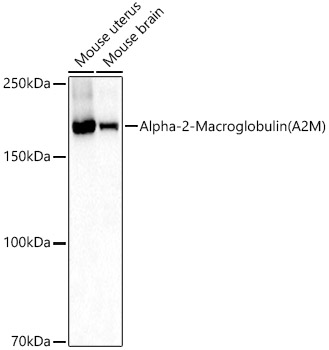Western blot analysis of various lysates using Alpha-2-Macroglobulin (A2M) Polyclonal Antibody at 1:1000 dilution.
