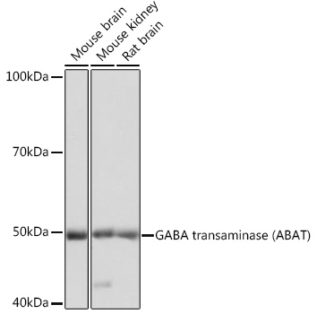 Western blot analysis of extracts of various cell lines using GABA transaminase (GABA transaminase (ABAT)) Polyclonal Antibody at 1:1000 dilution.