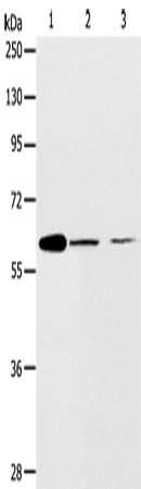 Western Blot analysis of NIH/3T3 and SKOV3 cell, Human ovarian cancer tissue using ABCE1 Polyclonal Antibody at dilution of 1:450