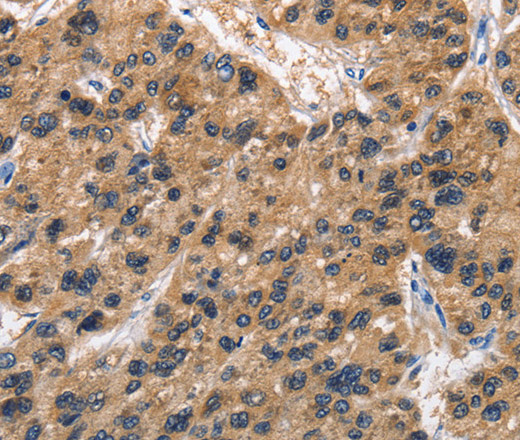 Immunohistochemistry of paraffin-embedded Human liver cancer tissue using ABI3BP Polyclonal Antibody at dilution 1:50