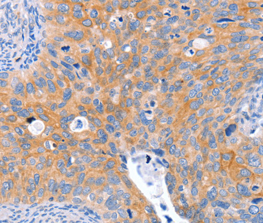 Immunohistochemistry of paraffin-embedded Human cervical cancer tissue using ABO Polyclonal Antibody at dilution 1:50