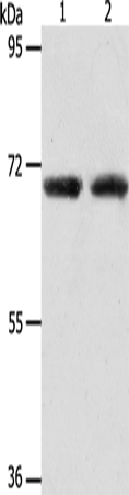 Western Blot analysis of Human liver cancer and fetal kidney tissue using ACOT11 Polyclonal Antibody at dilution of 1:650