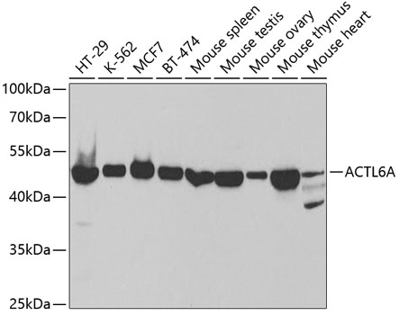 Western blot analysis of extracts of various cell lines using ACTL6A Polyclonal Antibody at dilution of 1:1000.