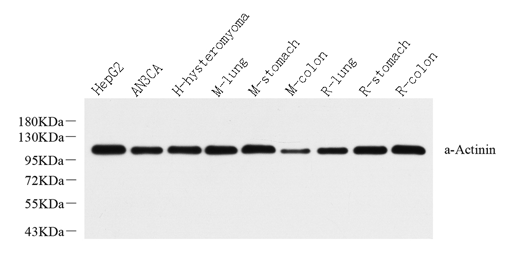 Western Blot analysis of various samples using ACTN1 Polyclonal Antibody at dilution of 1:2000.