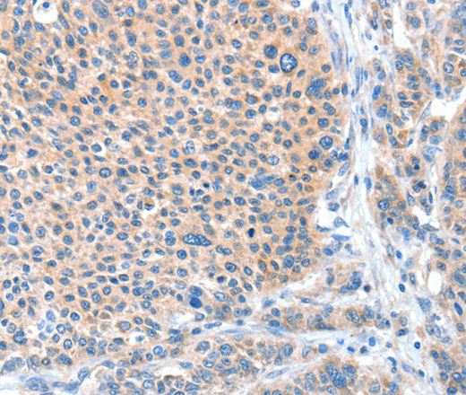 Immunohistochemistry of paraffin-embedded Human liver cancer tissue using ADAM20 Polyclonal Antibody at dilution 1:50