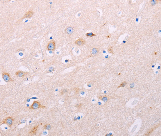 Immunohistochemistry of paraffin-embedded Human brain tissue using ADCY5 Polyclonal Antibody at dilution 1:40
