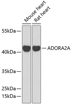 Western blot analysis of extracts of various cell lines using ADORA2A Polyclonal Antibody at dilution of 1:1000.