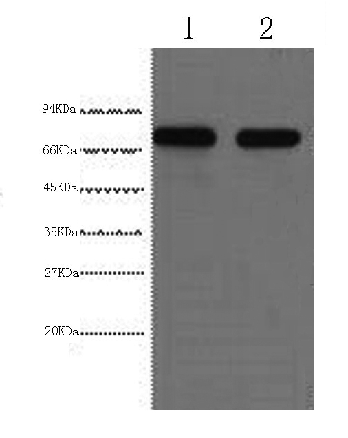 Western Blot analysis of HepG2 cells using AFP Monoclonal Antibody at dilution of 1:2000.