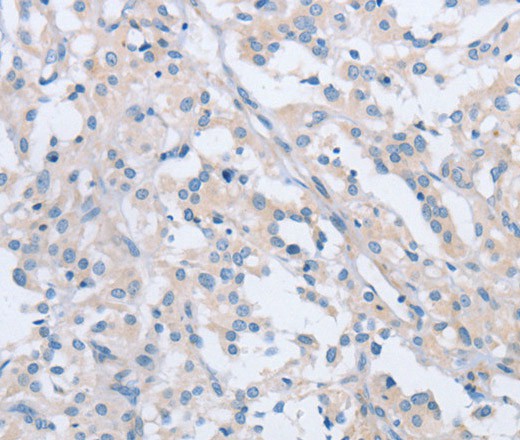 Immunohistochemistry of paraffin-embedded Human thyroid cancer tissue using AGAP2 Polyclonal Antibody at dilution 1:60