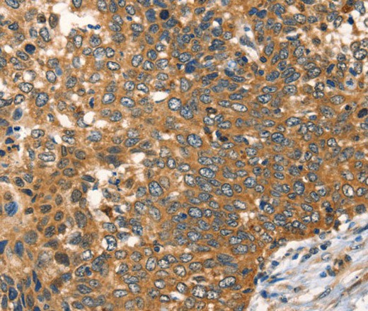 Immunohistochemistry of paraffin-embedded Human cervical cancer tissue using AGO1 Polyclonal Antibody at dilution 1:40