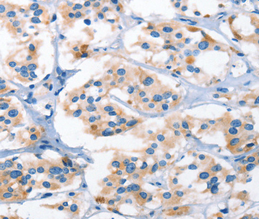 Immunohistochemistry of paraffin-embedded Human thyroid cancer tissue using AHR Polyclonal Antibody at dilution 1:50