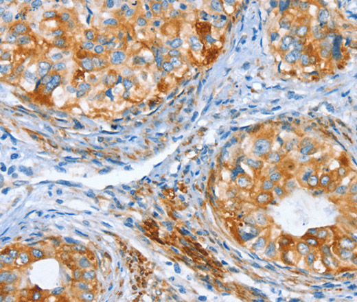 Immunohistochemistry of paraffin-embedded Human cervical cancer tissue using AIP Polyclonal Antibody at dilution 1:80