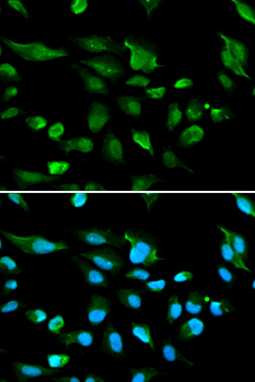 Immunofluorescence analysis of A549 cells using AIRE Polyclonal Antibody