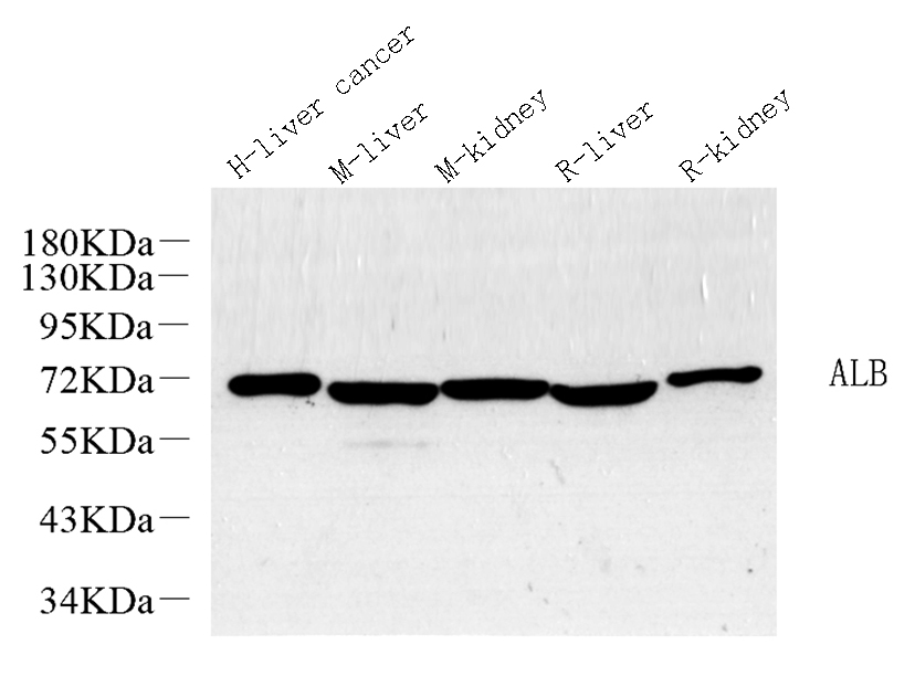 Western Blot analysis of various samples using ALB Polyclonal Antibody at dilution of 1:1000.