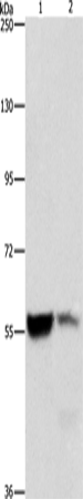 Western Blot analysis of Mouse liver and kidney tissue using ALDH8A1 Polyclonal Antibody at dilution of 1:550