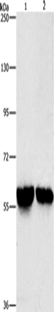 Western Blot analysis of Mouse liver and kidney tissue using ALDH8A1 Polyclonal Antibody at dilution of 1:800