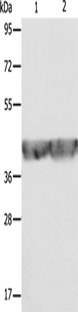 Western Blot analysis of A549 and hela cell using ALDOA Polyclonal Antibody at dilution of 1:500