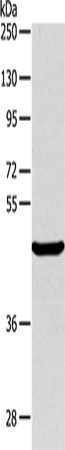 Western Blot analysis of Mouse pancreas tissue using ALKBH1 Polyclonal Antibody at dilution of 1:400