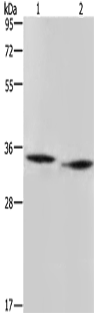 Western Blot analysis of Mouse heart and liver tissue using AMDHD2 Polyclonal Antibody at dilution of 1:500