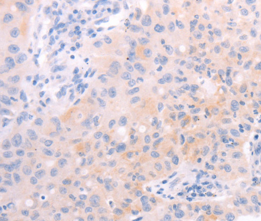 Immunohistochemistry of paraffin-embedded Human lung cancer tissue using AMH Polyclonal Antibody at dilution 1:30