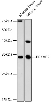 Western blot analysis of extracts of various cell lines using PRKAB2 Polyclonal Antibody at 1:1000 dilution.