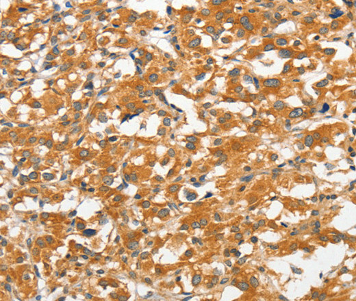 Immunohistochemistry of paraffin-embedded Human thyroid cancer tissue using ANKMY2 Polyclonal Antibody at dilution 1:30