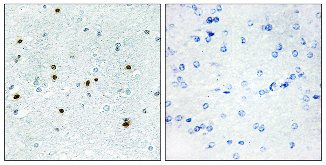 Immunohistochemical staining of human caudate shows strong positivity in neuropil.