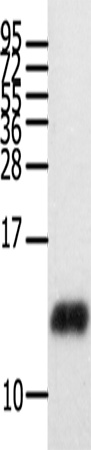 Western Blot analysis of Human brain glioma tissue using CCL28 Polyclonal Antibody at dilution of 1:450