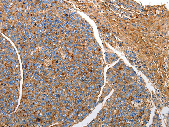 Immunohistochemistry of paraffin-embedded Human liver cancer tissue using CD151 Polyclonal Antibody at dilution 1:25