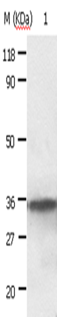 Western Blot analysis of HepG2 cell using ANXA2 Polyclonal Antibody at dilution of 1:640