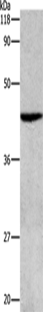 Western Blot analysis of Hela cell using ATG4B Polyclonal Antibody at dilution of 1:500