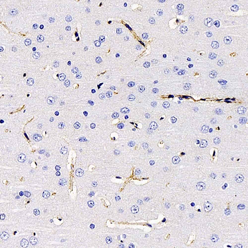 Immunohistochemistry analysis of paraffin-embedded rat brain using AQP4 Polyclonal Antibody at dilution of 1:400.