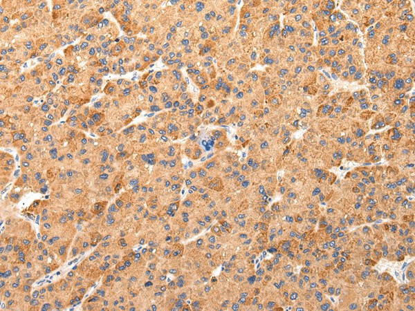 Immunohistochemistry of paraffin-embedded Human liver cancer tissue using AQP7 Polyclonal Antibody at dilution 1:40