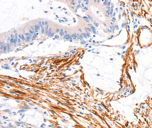 Immunohistochemistry of paraffin-embedded Human colon cancer tissue using ARAP1 Polyclonal Antibody at dilution 1:80