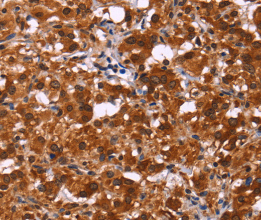 Immunohistochemistry of paraffin-embedded Human thyroid cancer tissue using ART5 Polyclonal Antibody at dilution 1:50