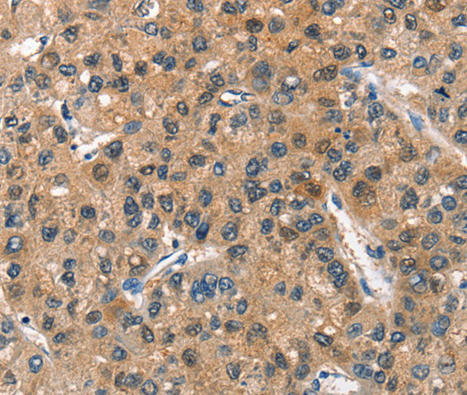 Immunohistochemistry of paraffin-embedded Human liver cancer tissue using ASB2 Polyclonal Antibody at dilution 1:40