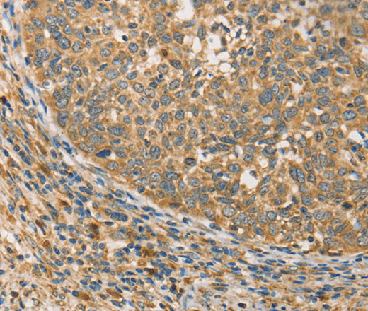 Immunohistochemistry of paraffin-embedded Human cervical cancer tissue using ATG3 Polyclonal Antibody at dilution 1:40