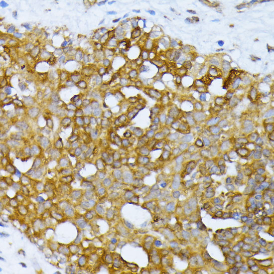 Immunohistochemistry of paraffin-embedded Human breast cancer using ATG7 Polyclonal Antibody at dilution of 1:100 (40x lens).