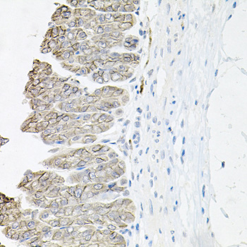 Immunohistochemistry of paraffin-embedded Mouse stomach using ATP1B1 Polyclonal Antibody at dilution of 1:100 (40x lens).