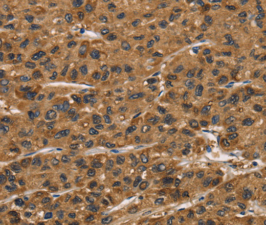 Immunohistochemistry of paraffin-embedded Human liver cancer tissue using ATP7A Polyclonal Antibody at dilution 1:50