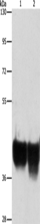 Western Blot analysis of Hela and 293T cell using AUP1 Polyclonal Antibody at dilution of 1:500