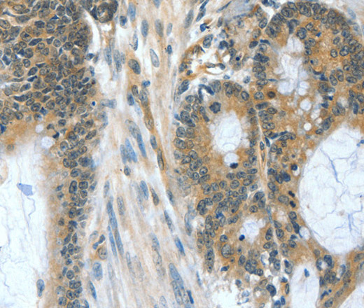 Immunohistochemistry of paraffin-embedded Human colon cancer tissue using BAD Polyclonal Antibody at dilution 1:60