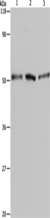 Western Blot analysis of A549, Hela and 293T cell using BAG5 Polyclonal Antibody at dilution of 1:500