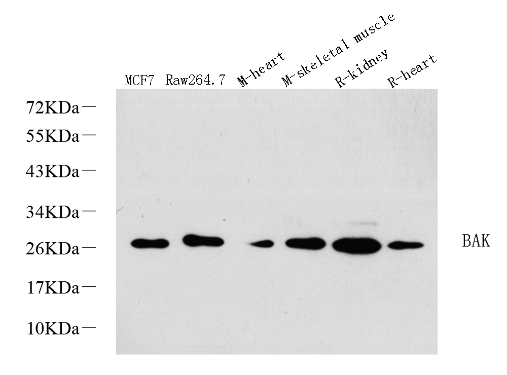Western Blot analysis of various samples using BAK1 Polyclonal Antibody at dilution of 1:1000.
