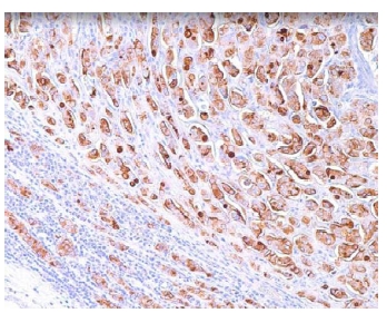 Formalin-Fixed, Paraffin-Embedded Human breast stained with BCA225 antibody Cat.-No. AM10049SU-N using peroxidase conjugate and DAB chromogen. Note cytoplasmic staining of breast carcinoma cells.