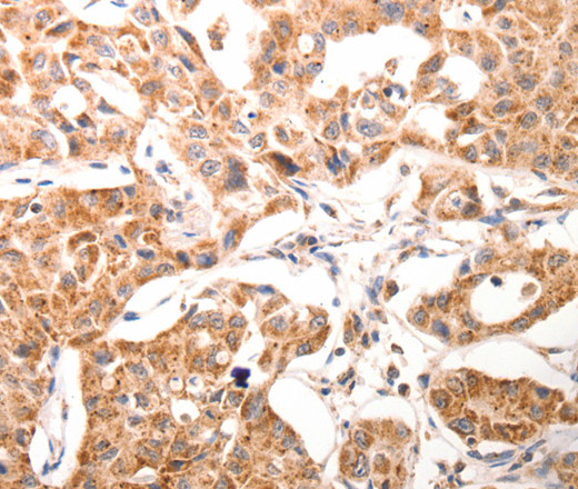 Immunohistochemistry of paraffin-embedded Human ovarian cancer tissue using BGLAP Polyclonal Antibody at dilution of 1:60