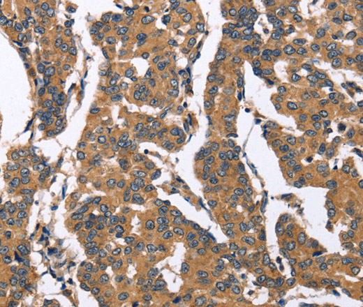 Immunohistochemistry of paraffin-embedded Human breast cancer tissue using BNIP2 Polyclonal Antibody at dilution 1:50