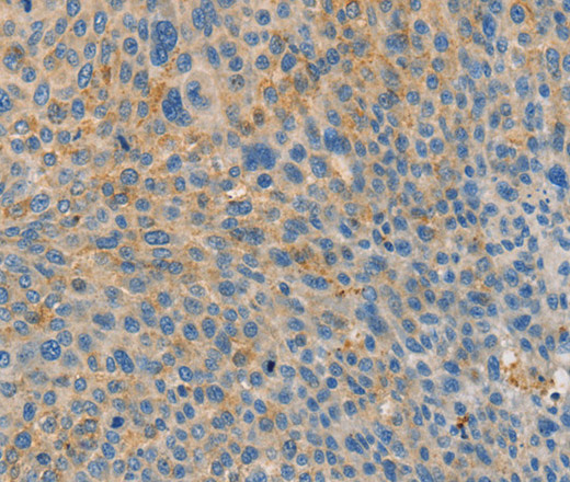 Immunohistochemistry of paraffin-embedded Human liver cancer tissue using BRCA1 Polyclonal Antibody at dilution 1:35