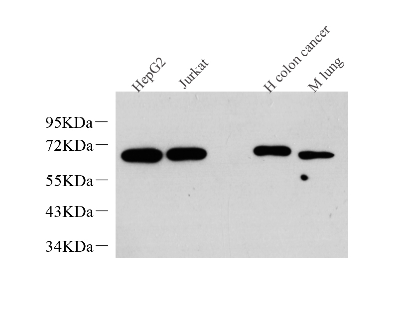 Western Blot analysis of various samples using c-Fos Monoclonal Antibody at dilution of 1:1000.