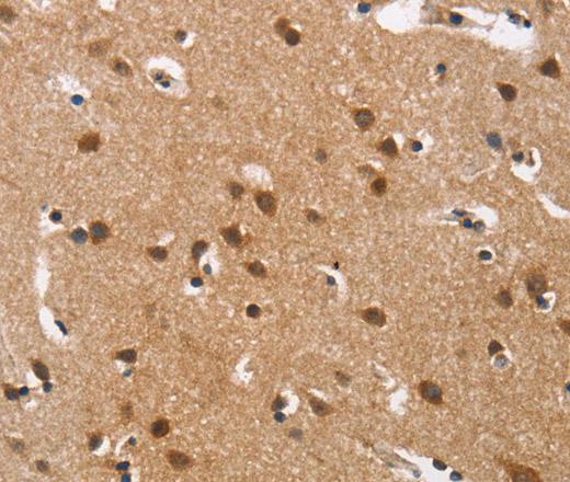 Immunohistochemistry of paraffin-embedded Human brain tissue using Cav1.3 Polyclonal Antibody at dilution 1:40